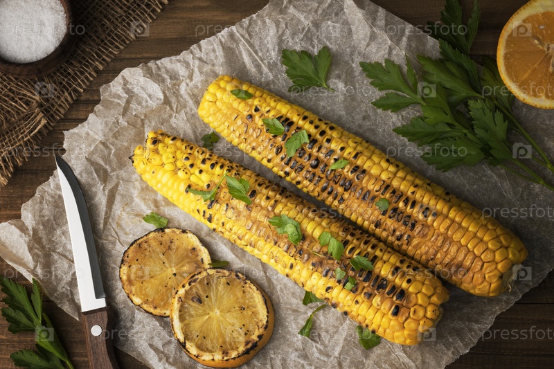 Вкусная мексиканская кукуруза на гриле с петрушкой, лимоном на гриле и солью