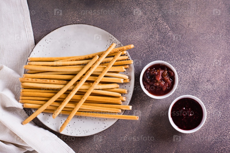 Хрустящие соломинки для выпечки с ягодной начинкой на тарелке на десерт. Вид сверху