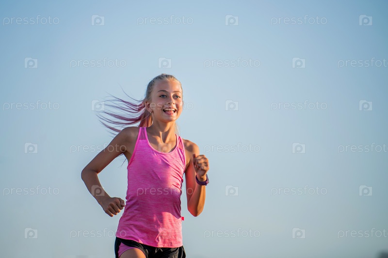 Девушка бежит солнечным летним вечером