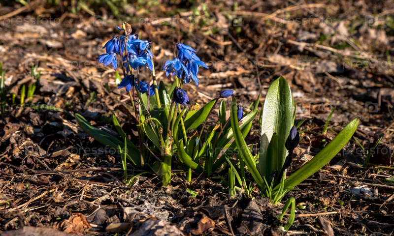 Пролеска сибирская – раннецветущее растение с голубыми цветками. Сквозь засохшие листья пробивались цветы первого сезона