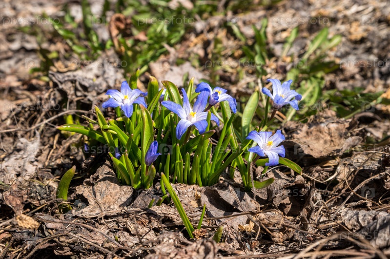 Сквозь засохшие листья пробивались первые весенние цветы. Прекрасная хионодокса зацвела в солнечный день