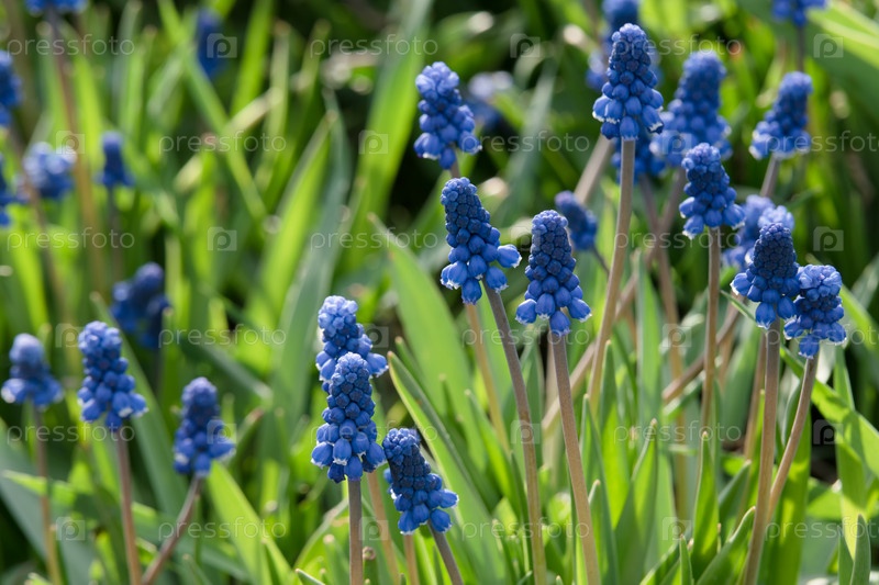 Весенние цветы мускари в саду