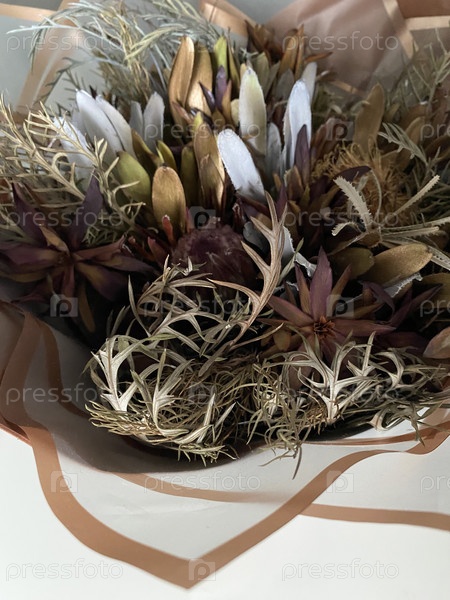 Это вид сверху на букет из сухоцветов