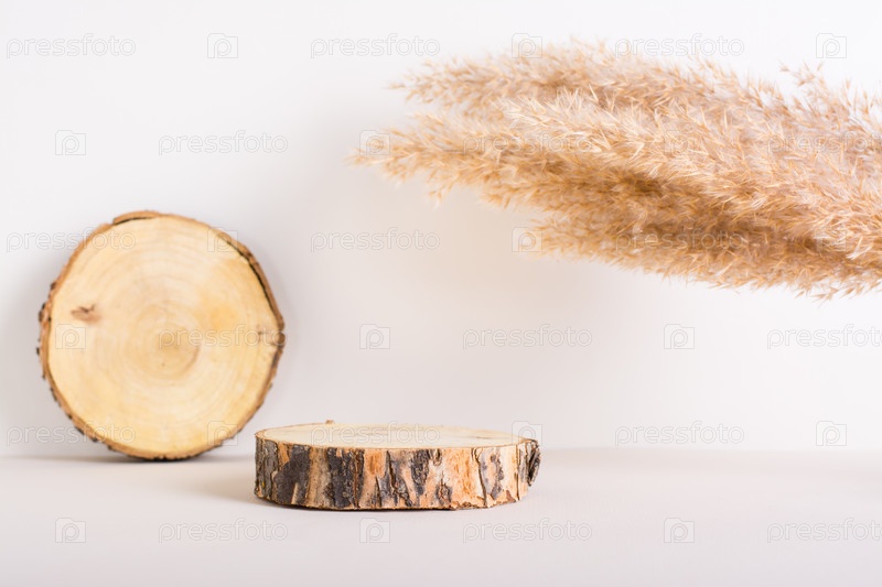 Естественный макет срезов деревьев и колосьев травы на светлом фоне