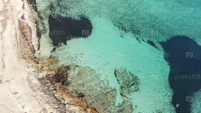 Вид с воздуха на природный райский пляж в Средиземном море, Каламильор, Майорка, Балеарские острова