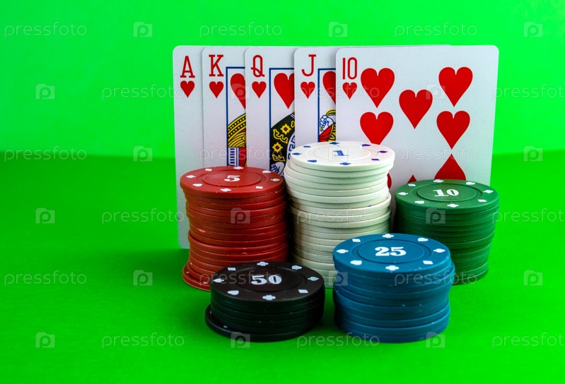Покерные фишки и флеш-рояль