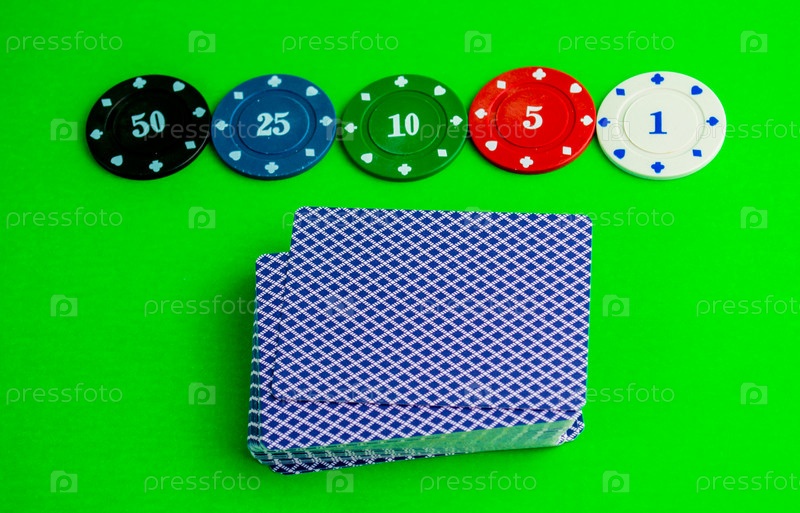 Игра в покер, карты и фишки на столе