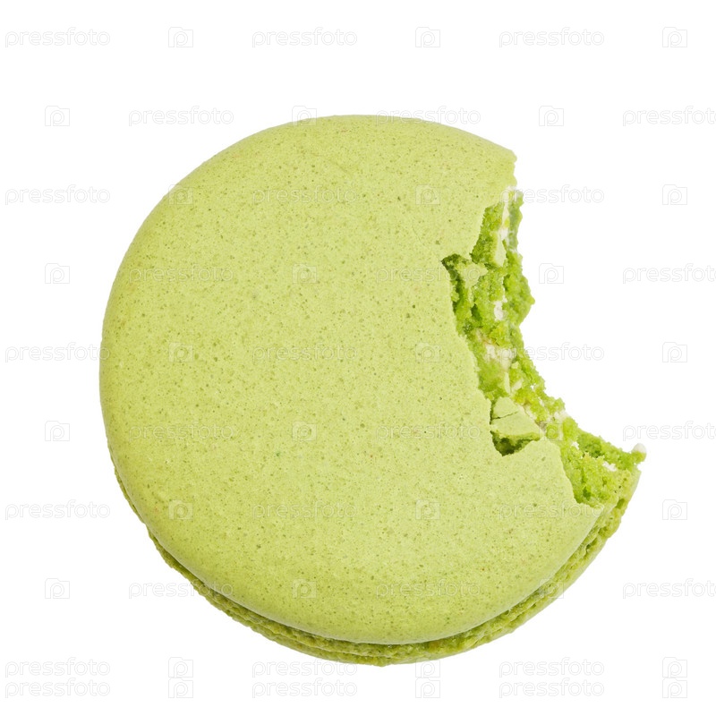 Макарон фисташки укуса крупного плана изолированный на белизне. Вид сверху