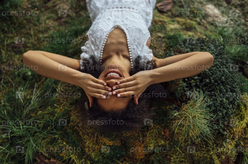 Мода и красота снимают очаровательную девушку смешанной расы в длинном платье