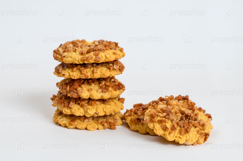 Песочное печенье с крошками жареного арахиса на белом фоне
