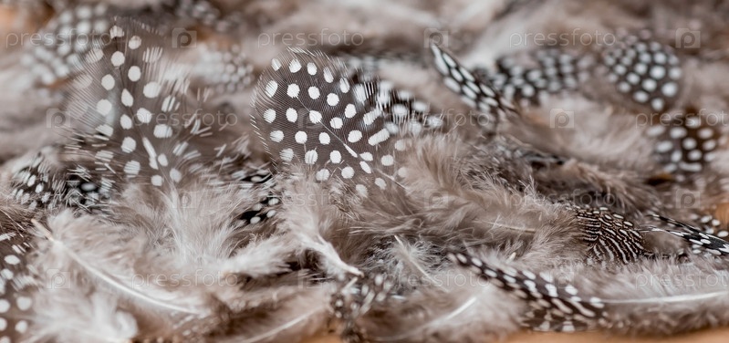 Красивый абстрактный фон темных пятнистых перьев на бежевом фоне. Пушистая, мягкая текстура перьев. Нежное знамя