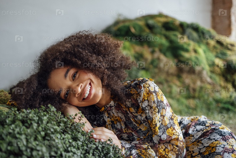 Мода и красота снимают очаровательную девушку смешанной расы в длинном платье