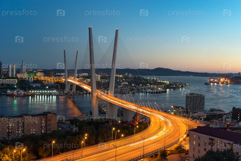 Владивосток, Россия. городской пейзаж с видом на Золотой мост