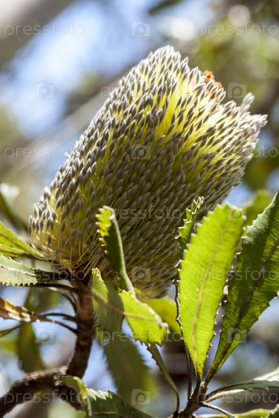 Прибрежная банксиа (Banksia) в солнечном свете.Австралия