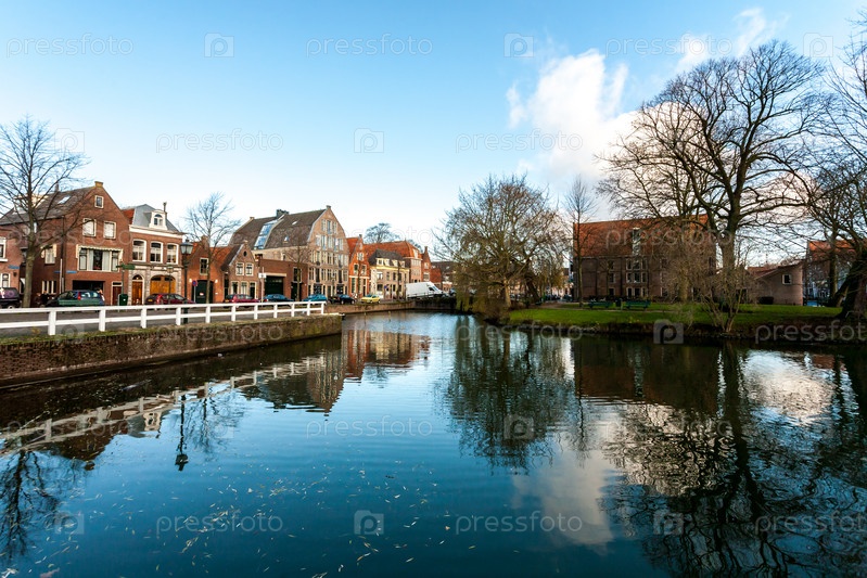 Улица возле озера в маленьком городке Хорн, Нидерланды