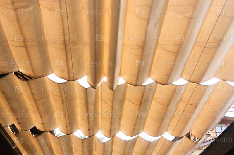 Крупным планом изображение брезентовой крыши на азиатской улице, Япония, Миядзима
