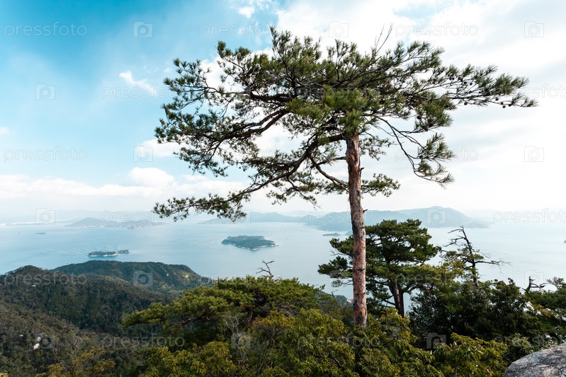 Красивый морской пейзаж с соснами недалеко от острова Миядзима, Япония