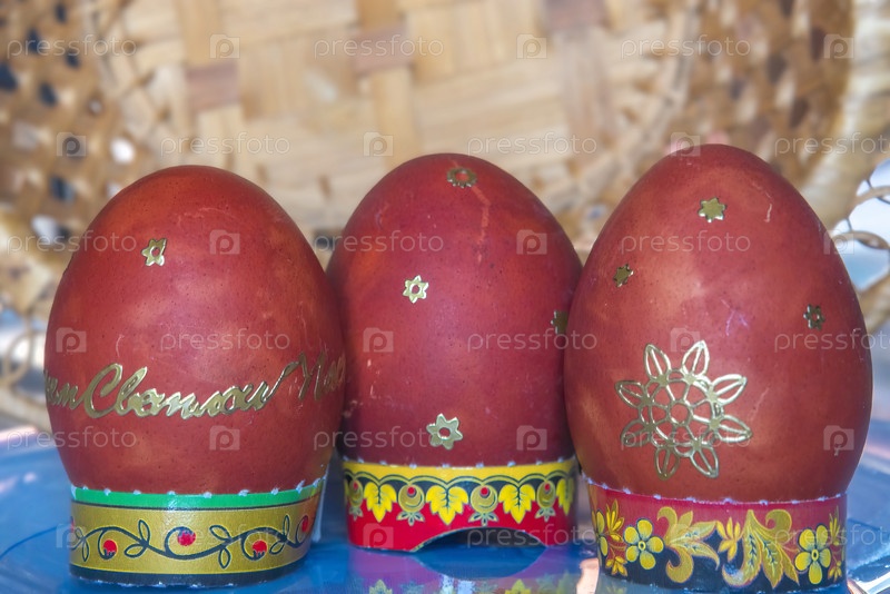Натюрморт, пасхальные яйца на блюдце оригинальной формы, два яйца, окрашенных в коричневый цвет, и одно под мрамор
