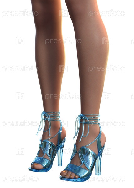 3D женские ноги в синих туфлях