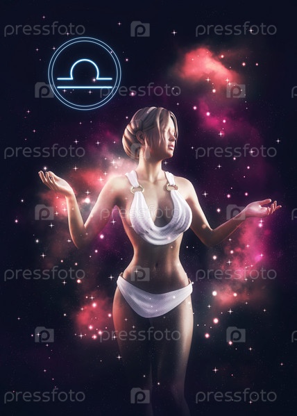 Девушка-Весы в древнегреческом наряде в космосе