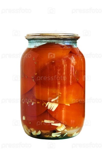 Ломтики консервированных маринованных помидоров домашнего приготовления