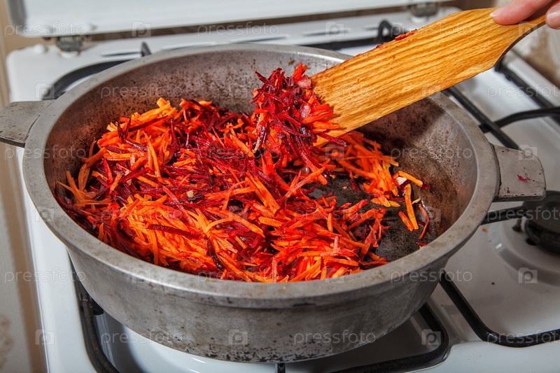 Обжариваем на сковороде морковь и свеклу