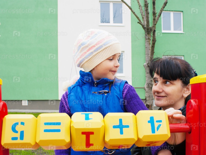 Мама учит дочку считаться с деревянными кубиками