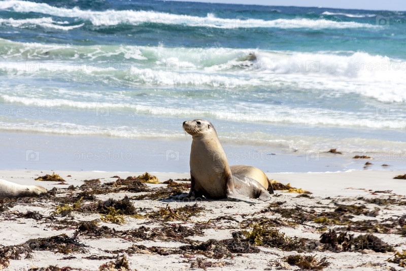 Маленький морской котик на песчаном пляже, Южная Австралия