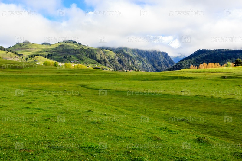 Красивая зеленая долина в летний день в горах Кавказа. Грузия, Тушети