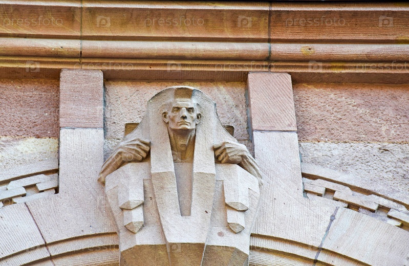 Барельеф мужчины на здании стального двора