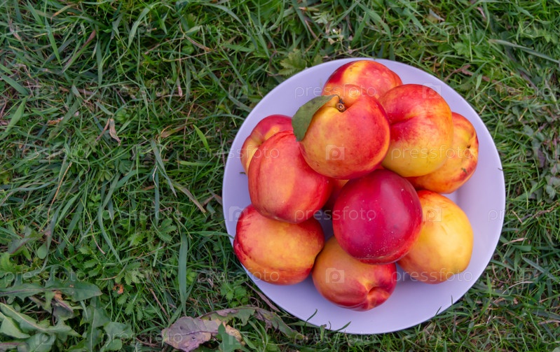 Сочные спелые вкусные нектарины на траве