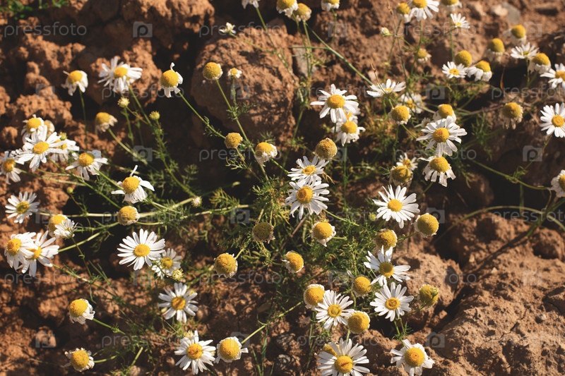 Цветы ромашки, растущие на суше