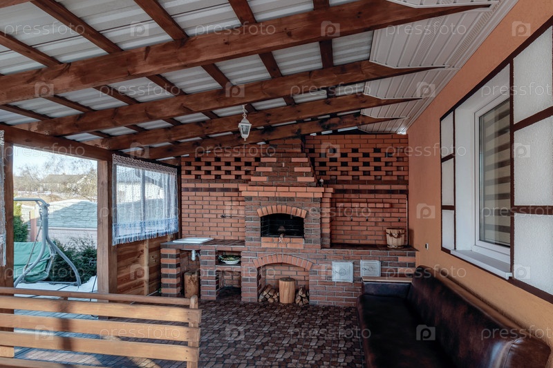 Русская дровяная печь. Печь сделана из кирпича. Печное отопление загородного дома