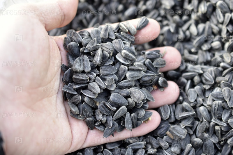 Свежие черные семечки подсолнуха в куче