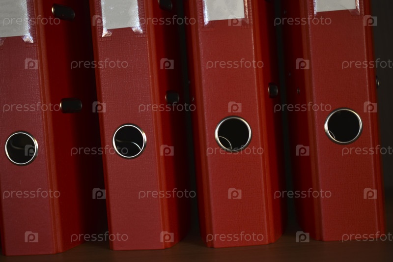 Офисные красные папки на полке в офисе