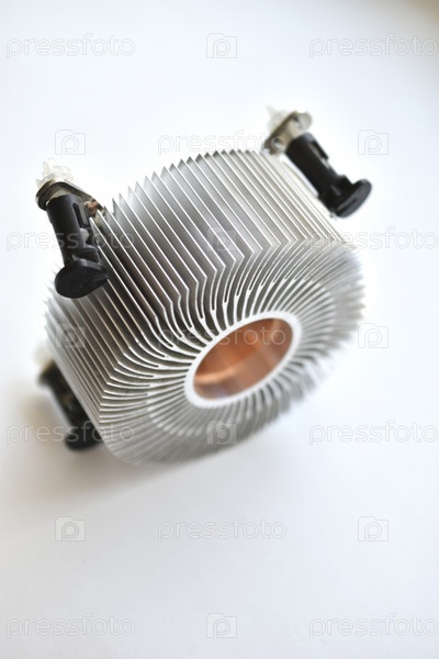 Радиатор охлаждения процессора на белом фоне