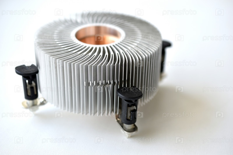 Радиатор охлаждения процессора на белом фоне
