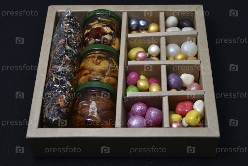 Подарочный набор конфет и орехов в меду. Вкусные сладости. Красочные сладости