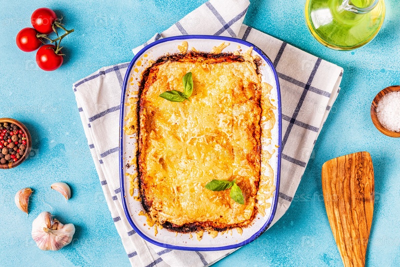 Традиционная итальянская лазанья с овощами, мясным фаршем и сыром