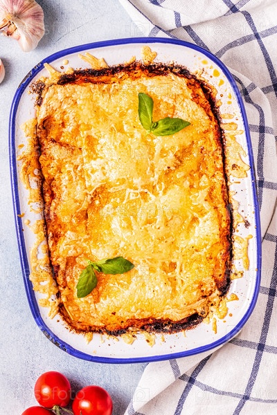 Традиционная итальянская лазанья с овощами, мясным фаршем и сыром