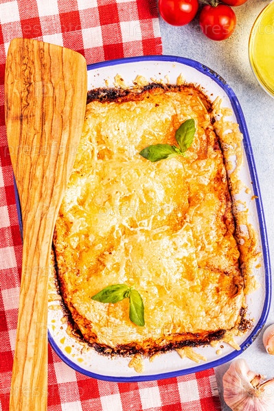Традиционная итальянская лазанья с овощами, мясным фаршем и сыром