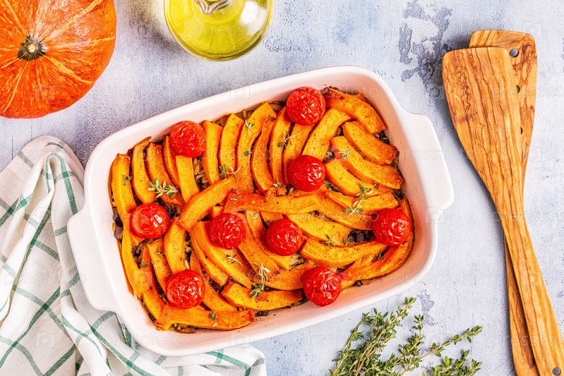 Запеканка из тыквы с мясом, рисом, помидорами