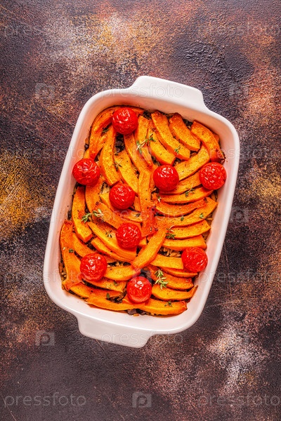 Запеканка из тыквы с мясом, рисом, помидорами