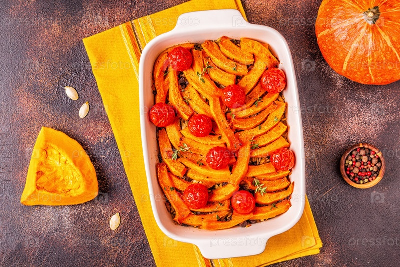 Запеканка из тыквы с мясом, рисом, помидорами