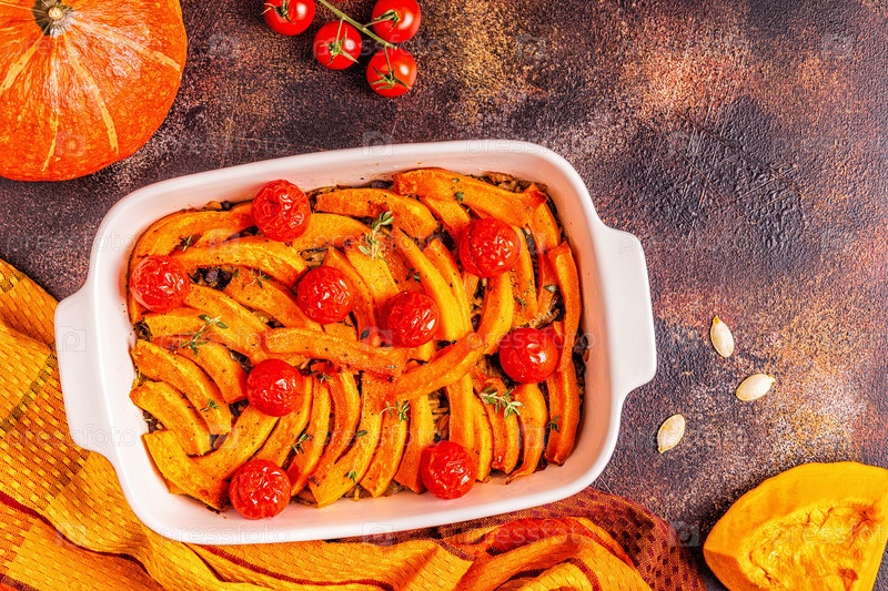 Запеканка из тыквы с мясом, рисом, помидорами