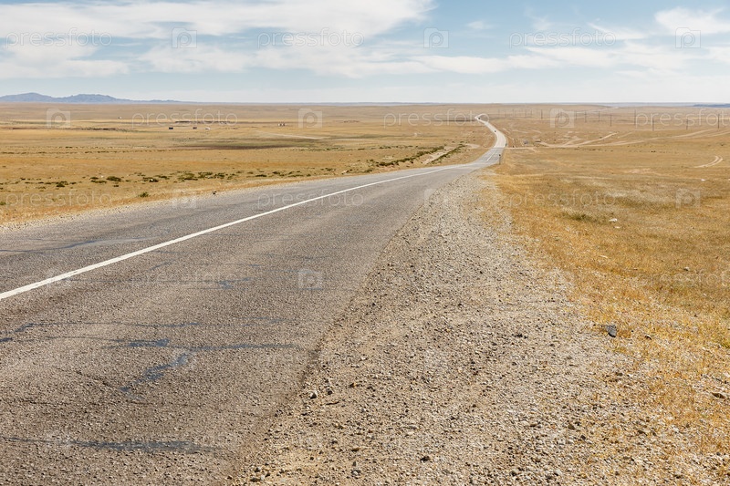 Асфальтовая дорога Сайшанд-Хор в Монголии, красивый пейзаж, пустыня Гоби