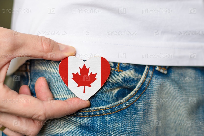 Патриот Канады! Деревянный значок с флагом Канады в форме сердца в мужской руке