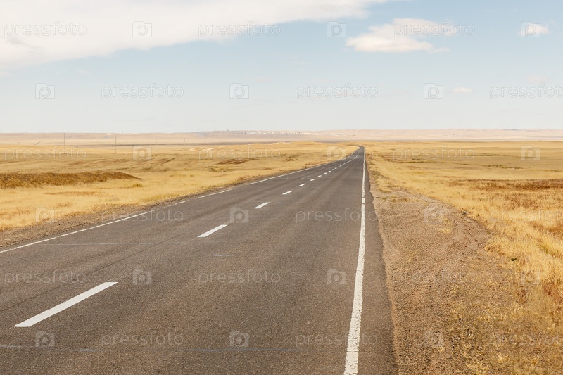 Асфальтированная дорога Sainshand Zamiin-Uud в Монголии, красивый пейзаж Пустыни Гоби, Монголия