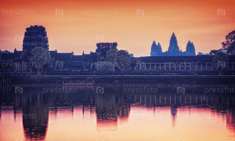 Потрясающий рассвет и отражения в Ангкор-Ват - Сиемреап - Камбоджа Самый большой религиозный памятник в мире