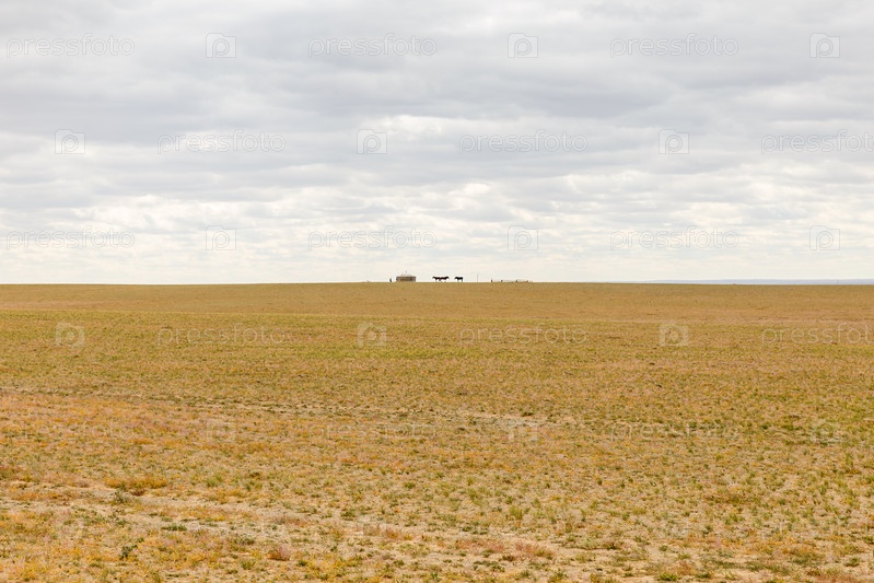 Монгольский пейзаж с юртой на заднем плане в пустыне Гоби, Монголия